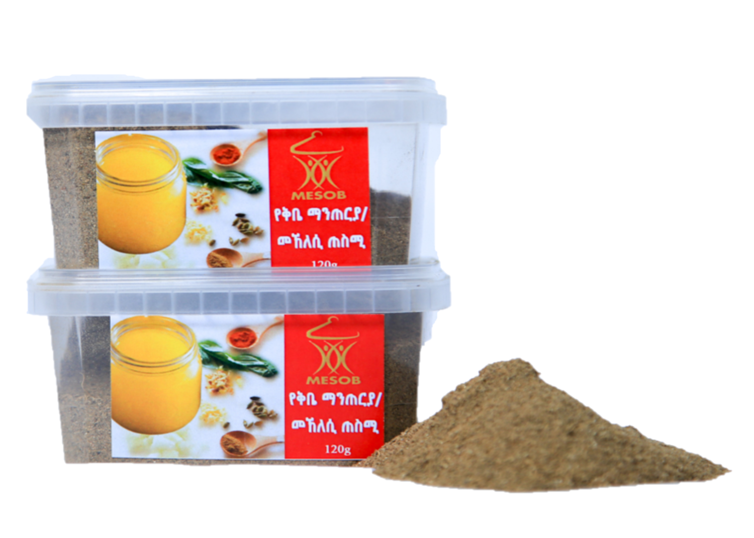 Use mesob’s organic kebe manteria spice to make your own kebe from butter you find in your local market.