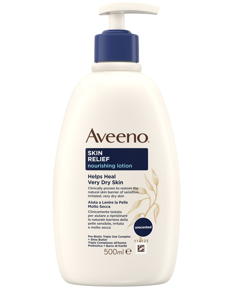 AVEENO Skin Relief Moisturising Lotion 500ml is specially formulated to deliver intensive hydration and long-lasting comfort to very dry, itchy, or sensitive skin. Its powerful yet gentle formula features Colloidal Oat Flour, Oat Extract, and Oat Oil, known for their natural ability to soothe, protect, and strengthen the skin’s moisture barrier.
