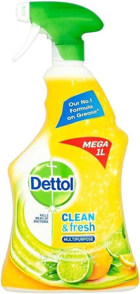 "Dettol Power & Fresh Advance Antibacterial Spray Citrus 1L is a high-performance disinfectant spray designed to clean and sanitize multiple surfaces with ease. Formulated with powerful antibacterial agents, it eliminates 99.9% of bacteria and viruses, including E. coli and cold & flu viruses. Its tough cleaning action cuts through grease, grime, and soap scum, leaving hard surfaces visibly clean and hygienically fresh. Infused with a crisp citrus fragrance, it refreshes your home while ensuring a deep, effective clean. Ideal for use in kitchens, bathrooms, and high-touch areas, this spray is your go-to solution for a sparkling, germ-free environment.