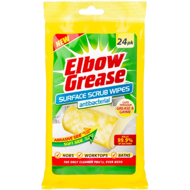 The Elbow Grease Surface Scrub Wipes come in a pack of 24, making them ideal for everyday cleaning tasks around the house. The wipes are easy to use, simply remove one from the pack and use it to wipe down the desired surface. For tough stains or areas that require extra scrubbing, use the textured side of the wipe to help break up dirt and grime.