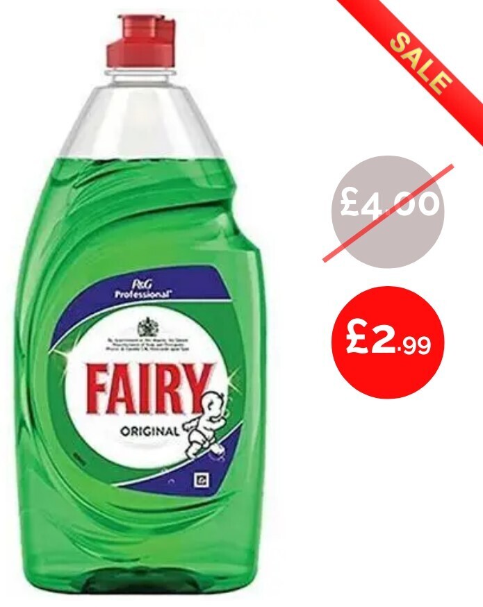 Fairy Professional Washing Up Liquid Original is a concentrated liquid detergent for washing up and pre-soaking of tableware, pots & pans, kitchen utensils and other surfaces. Long-lasting efficient washing-up solution.