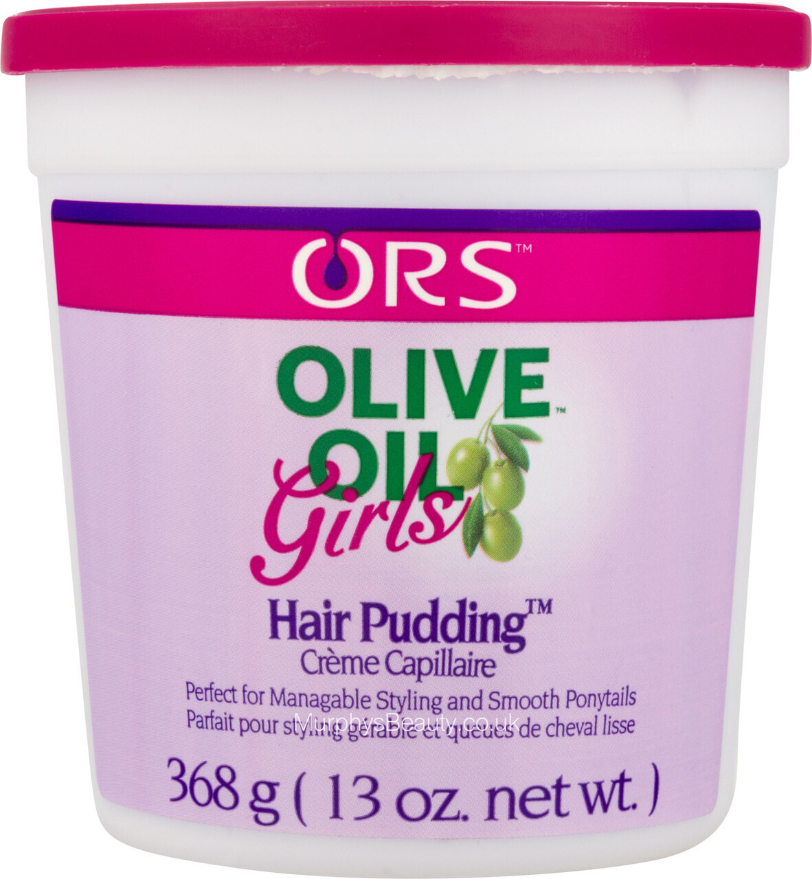 -> ORS Olive Oil Girls Hair Pudding is a hair care product that comes in a 13 oz jar.