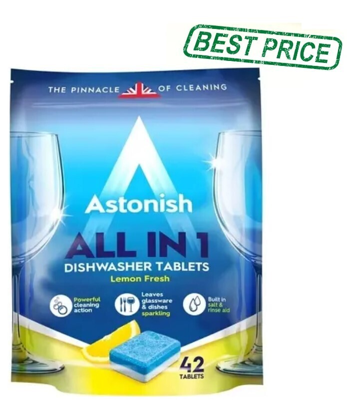 Product Description: Astonish All-In-1 Powerful Cleaning Tablets are an easy and effective way to clean your dishwasher and get your dishes looking their best. These tablets contain a powerful cleaning formula with added salt and rinse aid, which work together to remove tough stains, limescale, and grease from your dishes and dishwasher.
