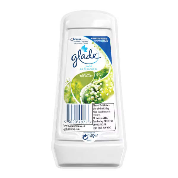 Fill your room with a burst of fresh fragrance with Glade Solid Gel Lily of the Valley Air freshener. The freshener slowly dissipates the fragrance around your home for long lasting scent and freshness.