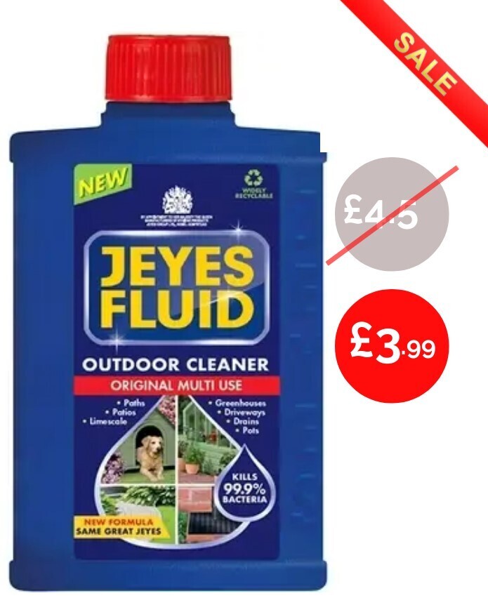 Jeyes Fluid Outdoor Cleaner Multiuse Disinfectant is a versatile cleaning solution that can also be used to disinfect garden tools, plant pots, and pet areas. It can also be used to clean and disinfect outdoor furniture and BBQs.