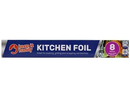 Keep It Handy Kitchen Foil is a roll of aluminum foil that measures 8 meters in length and 290mm in width. It is designed to be strong and durable, making it suitable for a variety of uses in the kitchen.