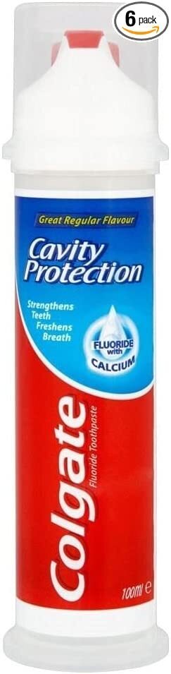 Colgate Regular Pump Toothpaste Regular has a great minty taste that freshens breath. The unique formula helps to fight cavities on teeth and roots. This Colgate toothpaste strengthens teeth with an active fluoride formula.