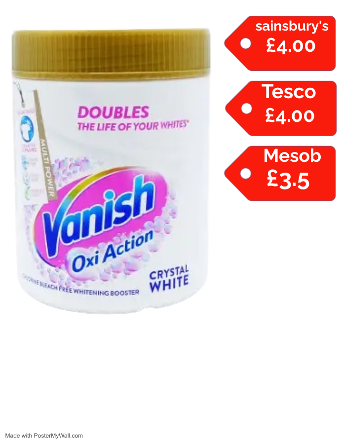 Vanish Oxi Action Fabric Stain Remover Powder Whites 470g